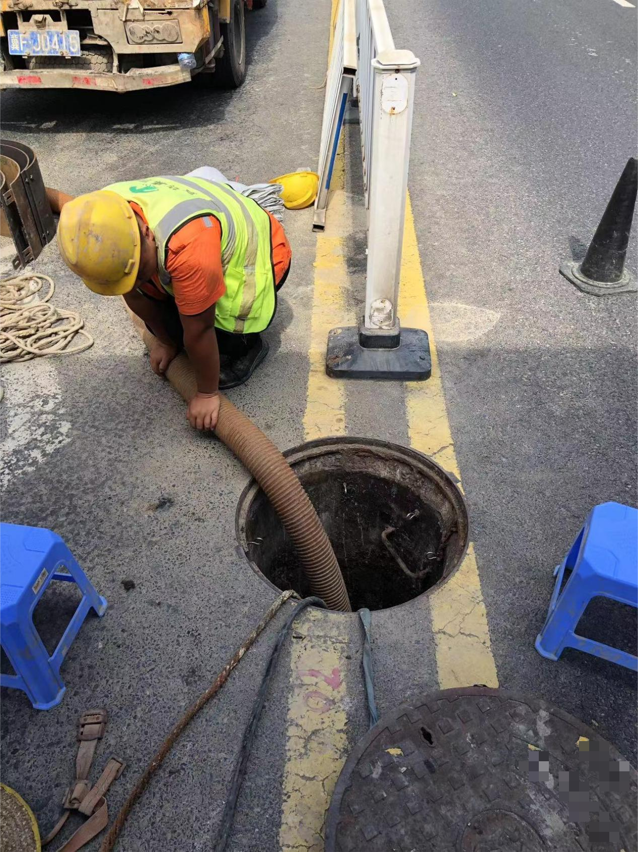 (1)在清洗過程中,如需人員在井下作業(yè),井下氣體濃度應滿足《城鎮(zhèn)排水管道維護安全技術規(guī)程》(CJJ6-2009)中的規(guī)定。井下作業(yè)前,應開啟作業(yè)井蓋和其上游井蓋進行自然通風,且通風不應小于30min。當排水管道經(jīng)過自然通風后,井下氣體濃度仍不符合規(guī)定時,應進行機械通風。