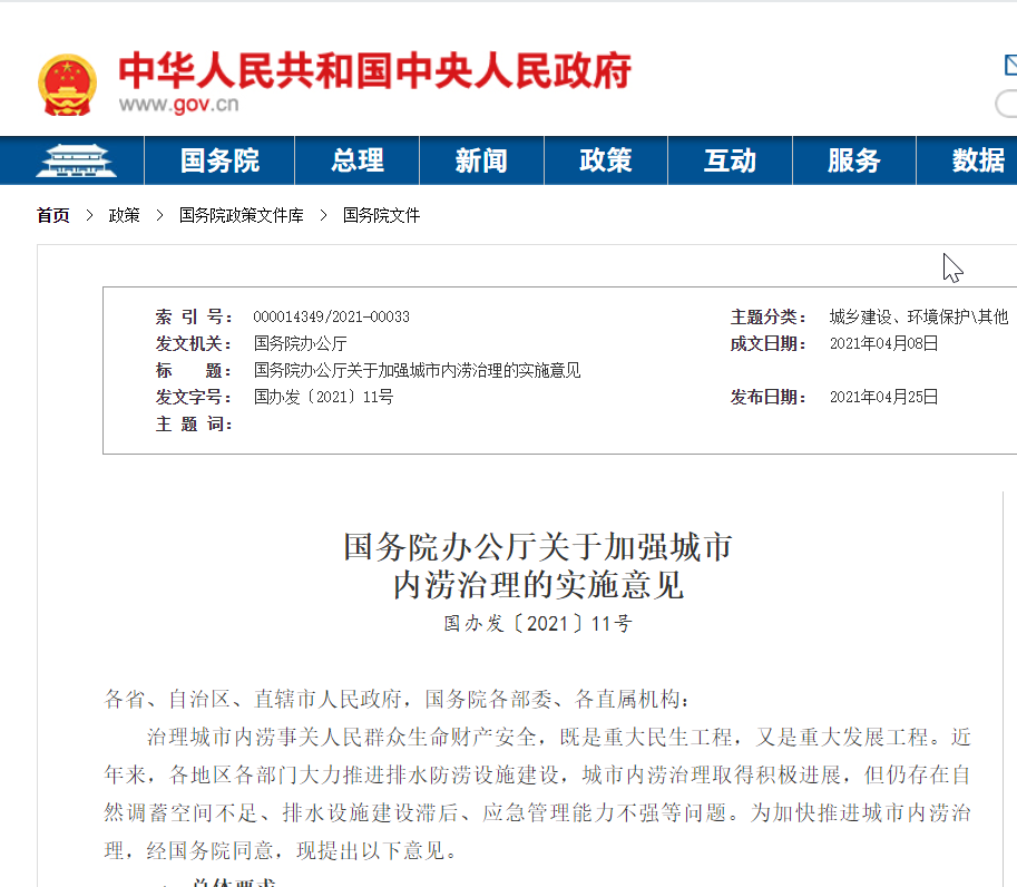 2、國家高度重視,全面推進(jìn)城市內(nèi)澇治理