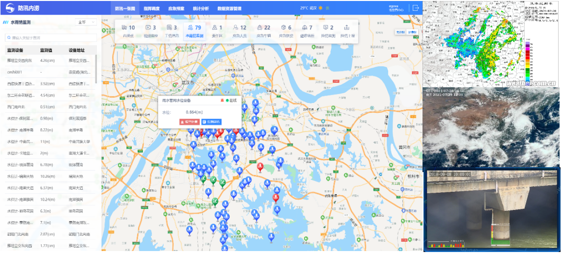 為了更好地完成汛期城區(qū)排水防澇治理工作,在強(qiáng)化防汛硬件設(shè)施的基礎(chǔ)上,打造一套集實(shí)時監(jiān)測、預(yù)警發(fā)布、指揮決策、分析總結(jié)為一體的防汛智慧平臺,實(shí)現(xiàn)汛前預(yù)警預(yù)報、汛中指揮調(diào)度、汛后總結(jié)評估。汛前預(yù)警預(yù)報。降雨之前,通過對接實(shí)時衛(wèi)星雷達(dá)云圖,對市區(qū)降雨的強(qiáng)度、分布趨勢進(jìn)行實(shí)時監(jiān)測,依托平臺內(nèi)的微信小程序及時向全市的相關(guān)防汛單位、人員發(fā)布預(yù)警信息、人員物資調(diào)度指令和相關(guān)工作安排,運(yùn)用GPS(全球定位系統(tǒng))及視頻監(jiān)控手段監(jiān)管各單位應(yīng)急車輛,督促各成員單位提前做好相關(guān)應(yīng)對防范準(zhǔn)備。