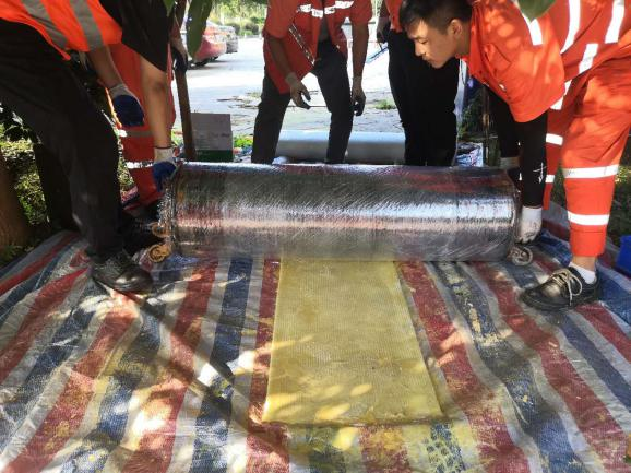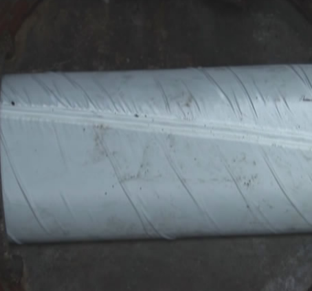 其施工過程如下:玻璃纖維布應按修復管道的管徑裁剪好,按照比管道周長大于10-15公分即可,便于膠片膨脹后的搭接,條件允許的情況下搭接部分盡量保持在管底位置。